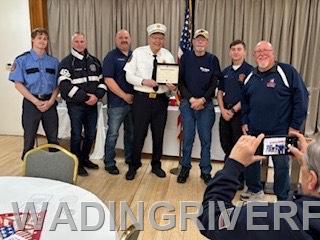 The Chief of the Department, Thomas Whelan, and members Tim Deveny, Phil Thompson, Hunter Thompson, George Besold, Doug Carlen, and Scott Engelhardt accepted the award and a donation from the Daughters of the American Revolution on behalf of the Wading River Fire Department.